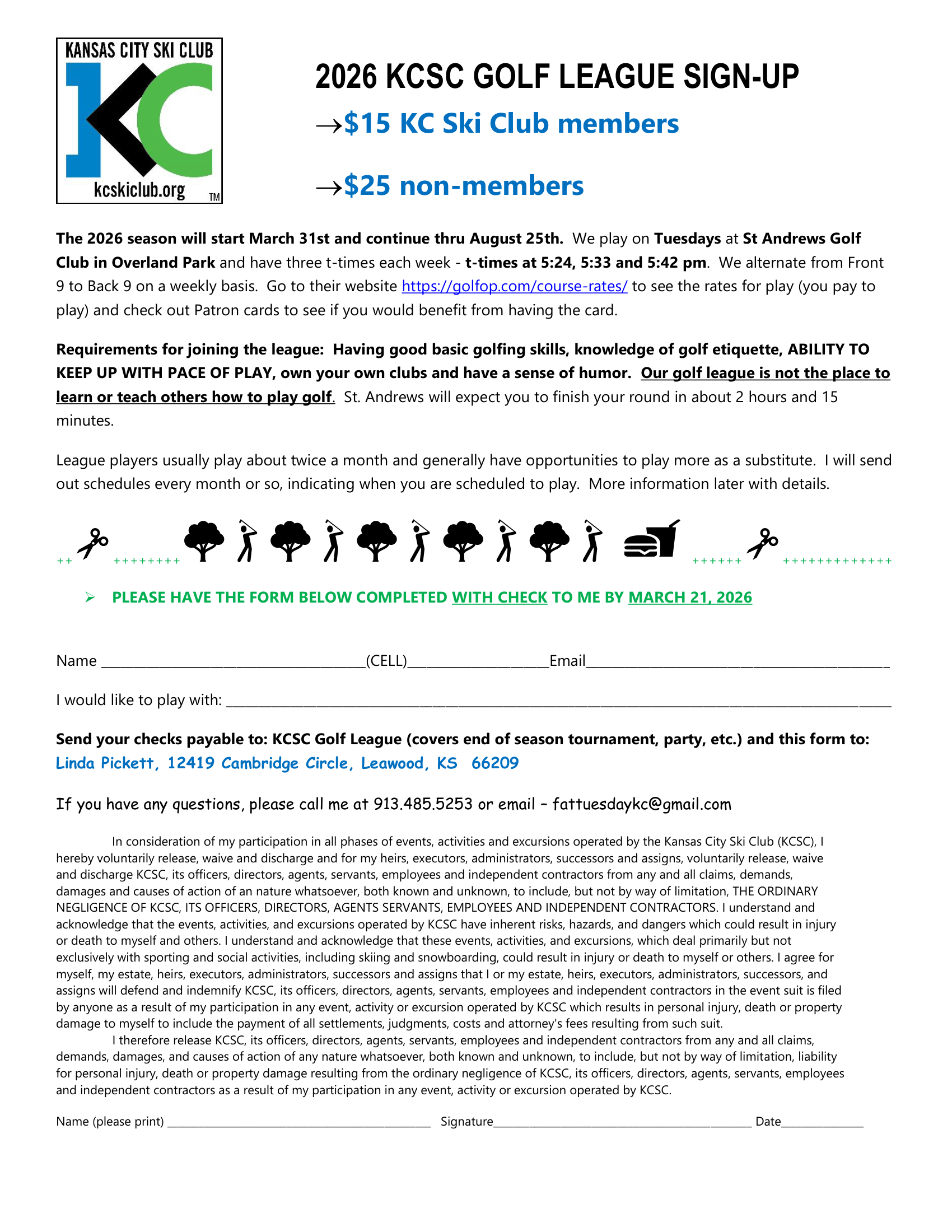 2026 KCSC Golf League Sign-up